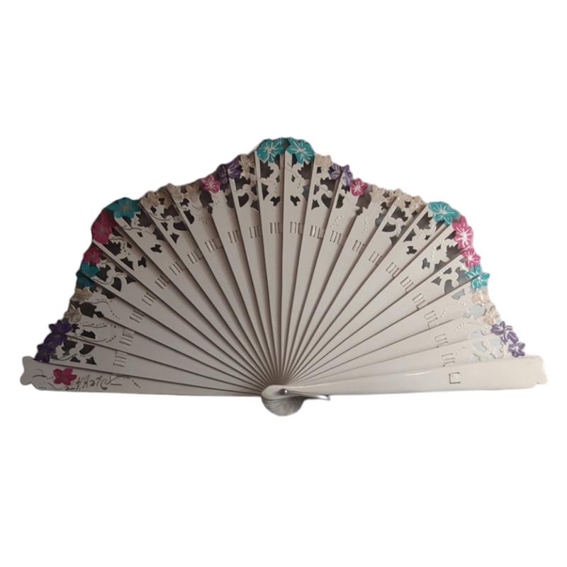 Abanico pintado a mano con delicado calado en la madera. Unico y exclusivo. Totalmente personalizado