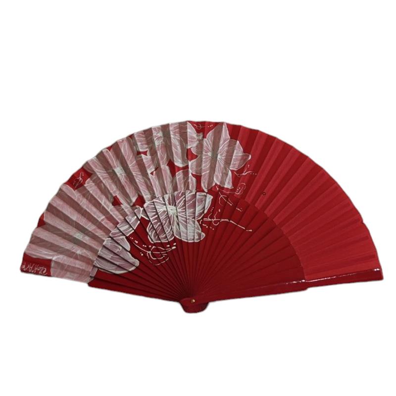 Abanico realizado en madera de Arce lacado y país en Algodón, pintado a mano alzada, por las dos caras. Muy utilizado en espectáculos, y para uso diario. Tamaño grande 27 cm
