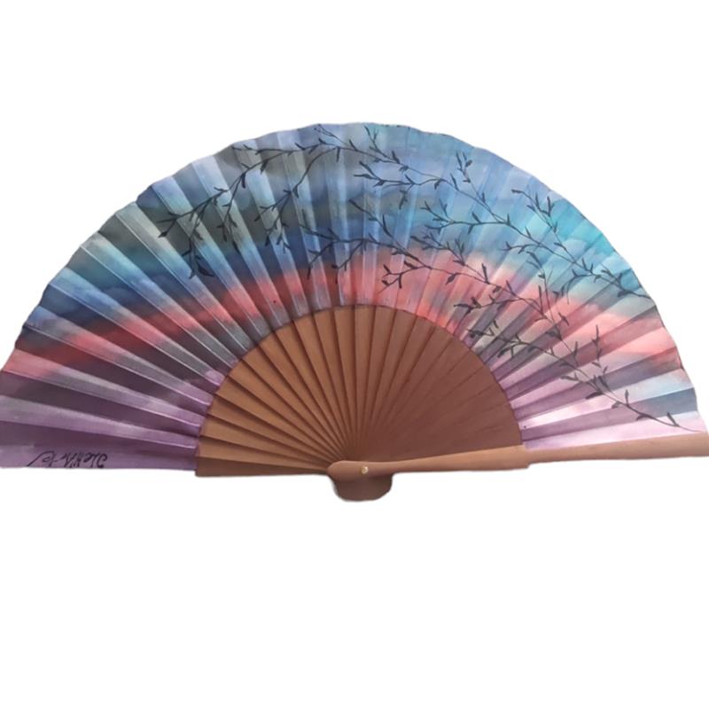 Abanico pintado a mano  en madera de peral y país de seda, ideal para el verano por su ligereza, único y exclusivo. Totalmente personalizado.