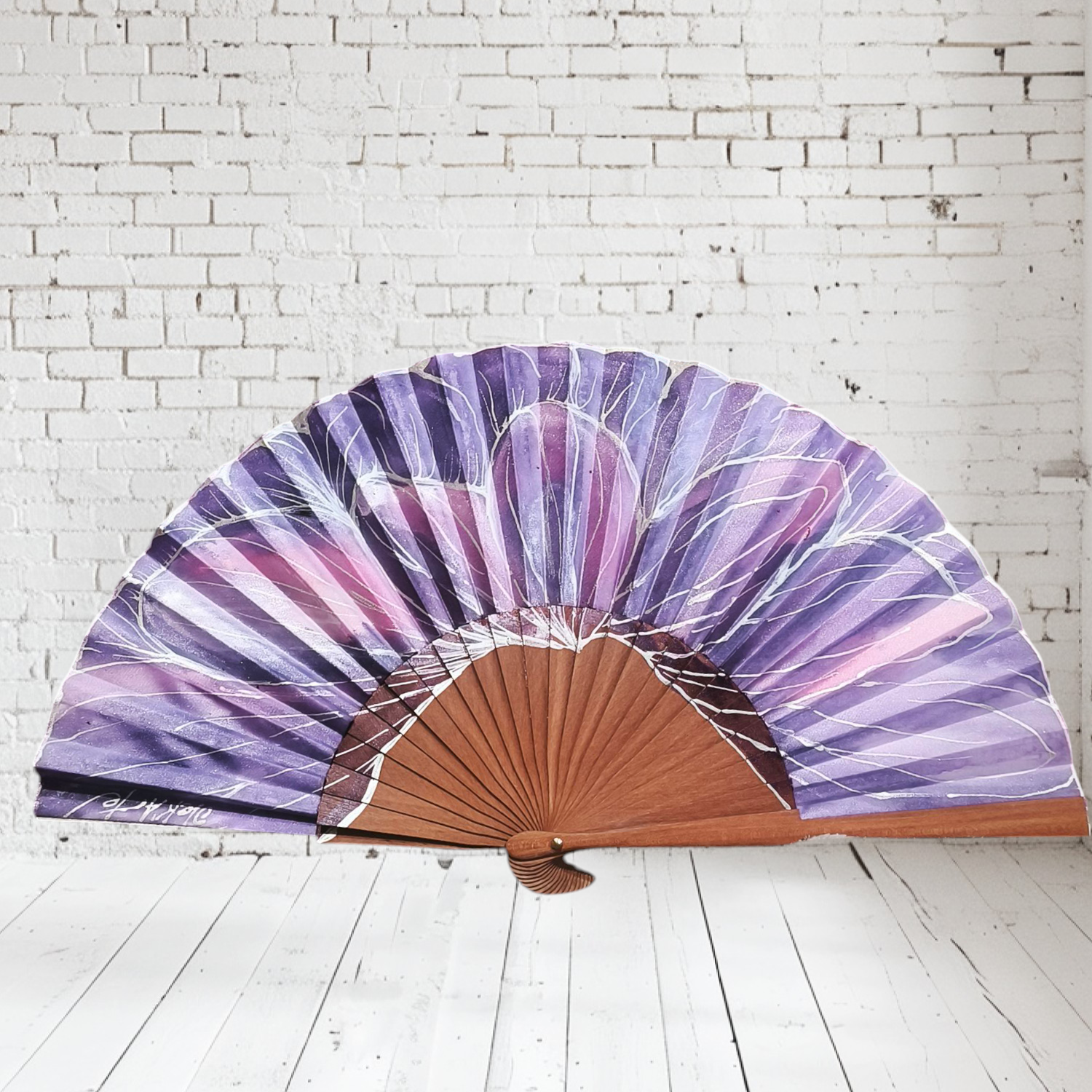 Abanico pintado a mano  en madera de peral y país de seda, ideal para el verano por su ligereza, único y exclusivo. Totalmente personalizado.