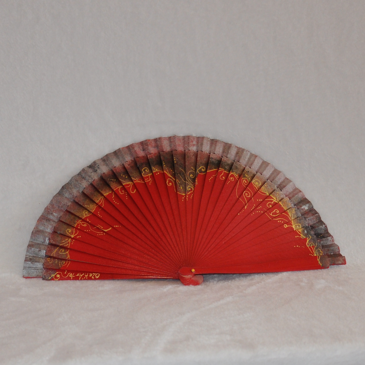 Abanico realizado en madera de Arce lacado, pintado a mano alzada por las dos caras, ligero y practico de uso diario. Tamaño clásico 23 cm