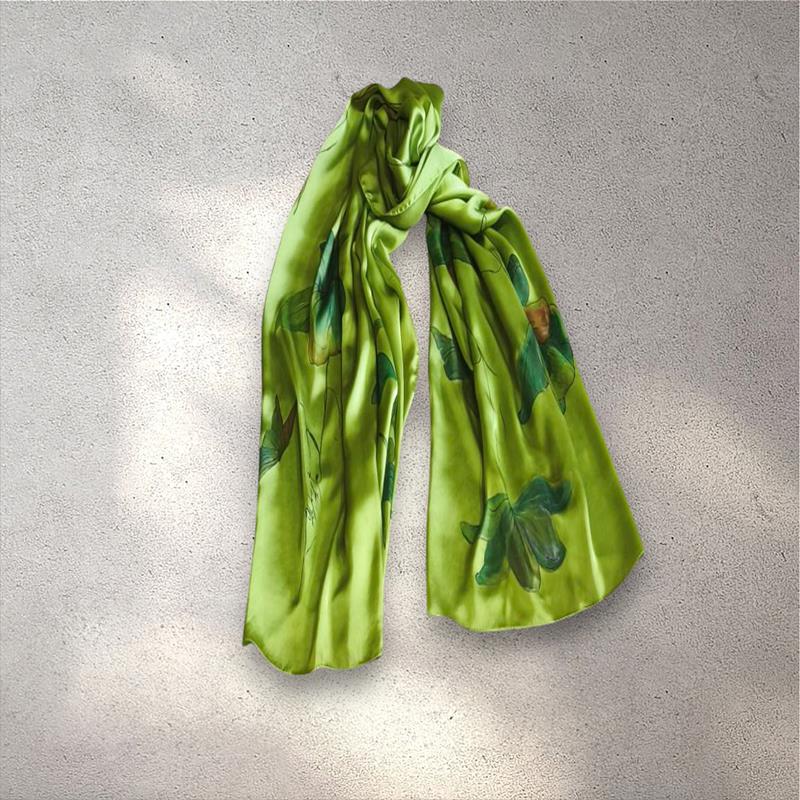 Fular pintado a mano ideal para el verano por su tacto y aspecto ligero, que lo hace muy combinable